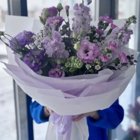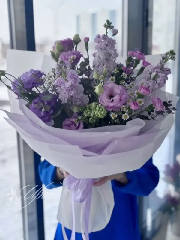 Окунитесь в нежность и весеннее настроение с этим изысканным букетом. Гармоничное сочетание сиреневых и лиловых оттенков, дополненное воздушными штрихами белых цветов, создает утонченную композицию. Этот букет станет идеальным подарком, выражающим восхищение и трепет.
