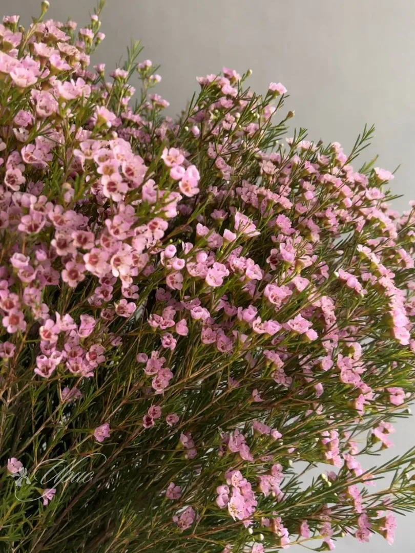 Букет из нежных розовых веточек, создающий воздушную и лёгкую композицию. Декоративное оформление из тонких зелёных стеблей и множества мелких розовых цветков идеально подойдёт для создания романтичной и изящной атмосферы. Этот букет станет прекрасным выбором для тех, кто ценит воздушные и лёгкие цветочные композиции.