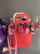Букет из свежих цветов в яркой упаковке это элегантное и стильное решение для любого повода. Нежные оттенки розовых и фиолетовых тонов создают атмосферу тепла и уюта. В составе букета присутствуют разнообразные цветы, такие как розы, орхидеи и хризантемы, что делает композицию объемной и выразительной.