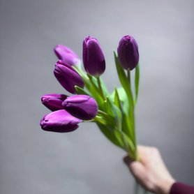 Букет из фиолетовых тюльпанов - это изящный и элегантный подарок, способный передать глубину чувств и эмоций. Нежные лепестки и насыщенный цвет делают его особенно привлекательным. Такой букет станет прекрасным выражением любви и внимания.